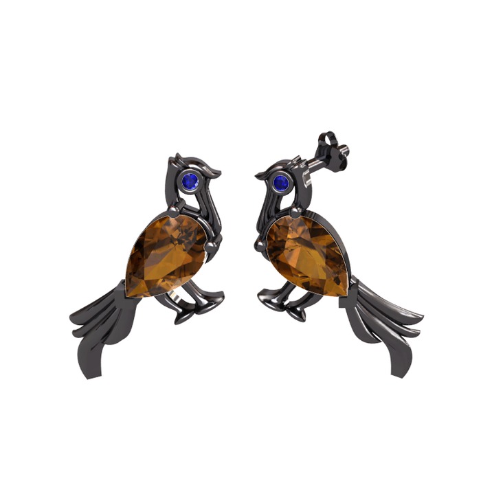 Dumanlı kuvars ve lab safir 925 ayar siyah rodyum kaplama gümüş küpe