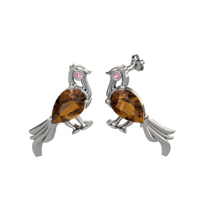 Dumanlı kuvars ve pembe kuvars 925 ayar gümüş küpe