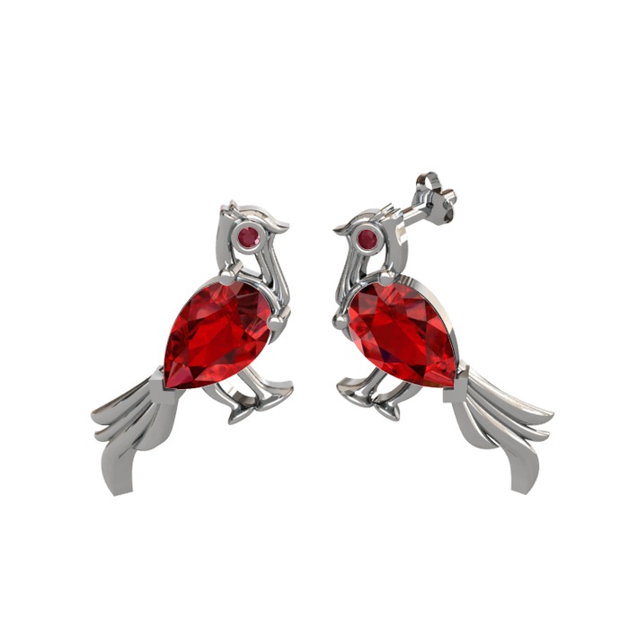 Garnet ve kök yakut 18 ayar beyaz altın küpe