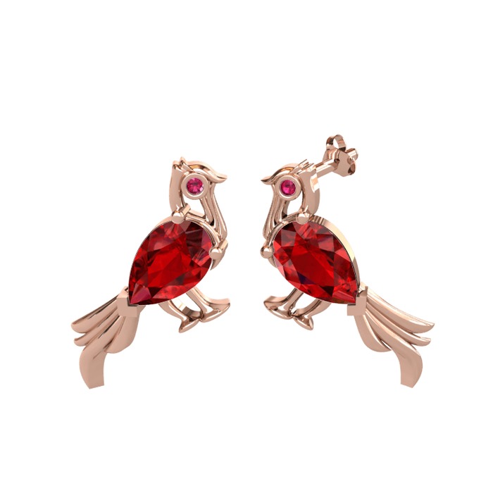 Garnet ve rodolit garnet 14 ayar rose altın küpe