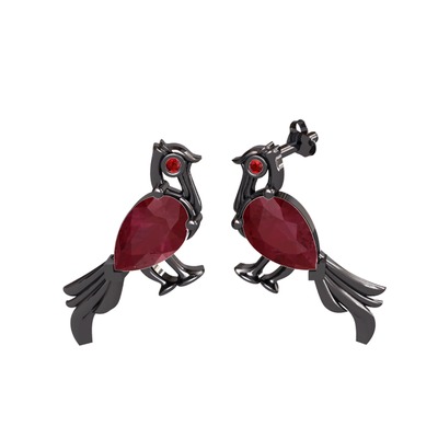 Kök yakut ve garnet 925 ayar siyah rodyum kaplama gümüş küpe