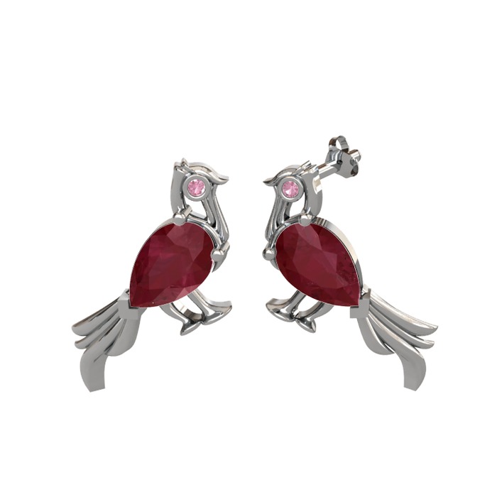 Kök yakut ve pembe kuvars 925 ayar gümüş küpe