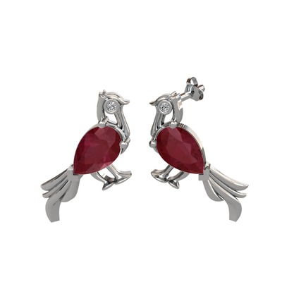 Kök yakut ve pırlanta 925 ayar gümüş küpe (0.03 karat)
