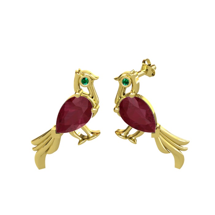 Kök yakut ve yeşil kuvars 14 ayar altın küpe