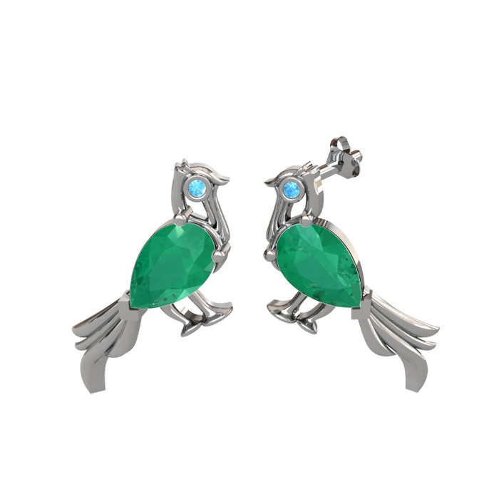 Kök zümrüt ve akuamarin 925 ayar gümüş küpe