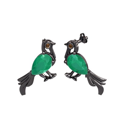 Kök zümrüt ve dumanlı kuvars 925 ayar siyah rodyum kaplama gümüş küpe