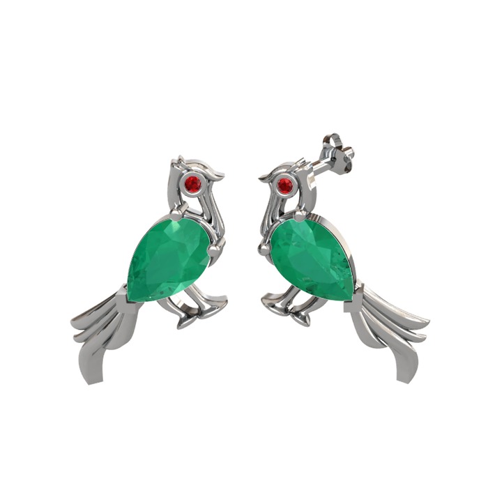Kök zümrüt ve garnet 18 ayar beyaz altın küpe