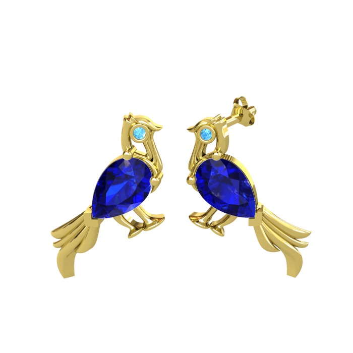 Lab safir ve akuamarin 925 ayar altın kaplama gümüş küpe