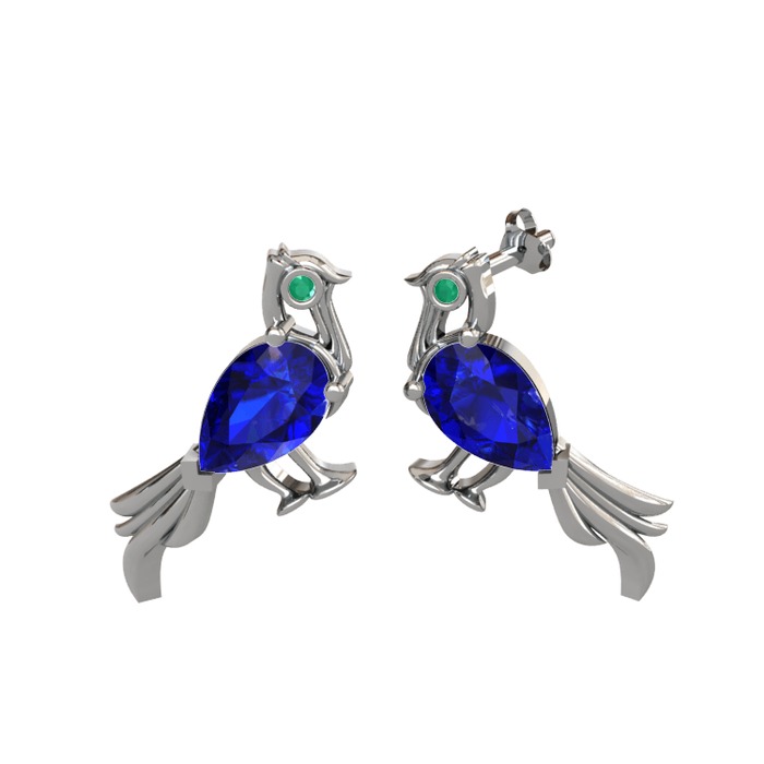 Lab safir ve kök zümrüt 18 ayar beyaz altın küpe