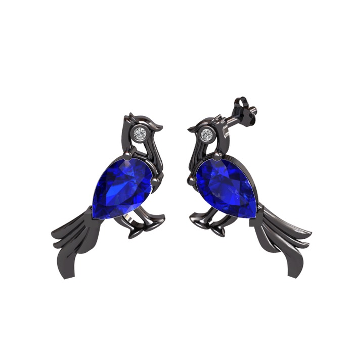 Lab safir ve swarovski 925 ayar siyah rodyum kaplama gümüş küpe