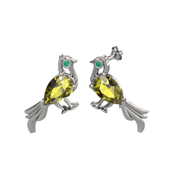 Peridot ve kök zümrüt 18 ayar beyaz altın küpe