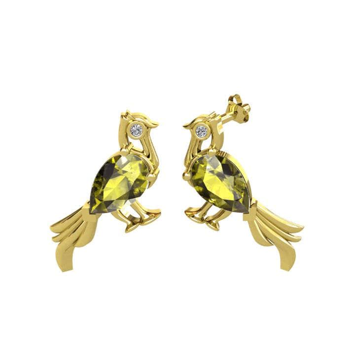 Peridot ve pırlanta 14 ayar altın küpe (0.03 karat)