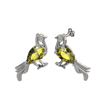 Peridot ve pırlanta 18 ayar beyaz altın küpe (0.03 karat)
