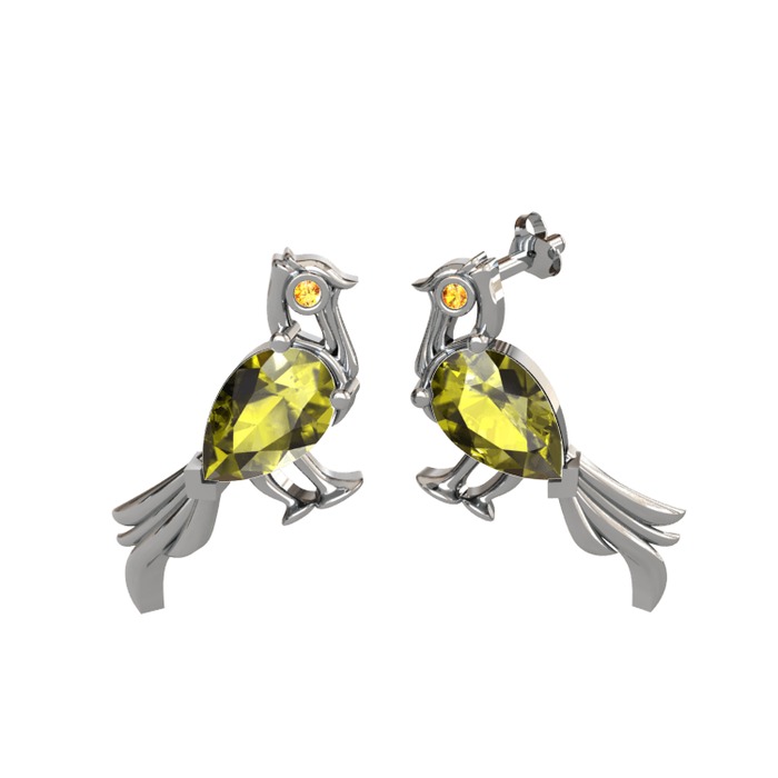 Peridot ve sitrin 14 ayar beyaz altın küpe