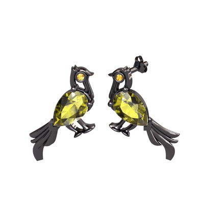 Peridot ve sitrin 925 ayar siyah rodyum kaplama gümüş küpe