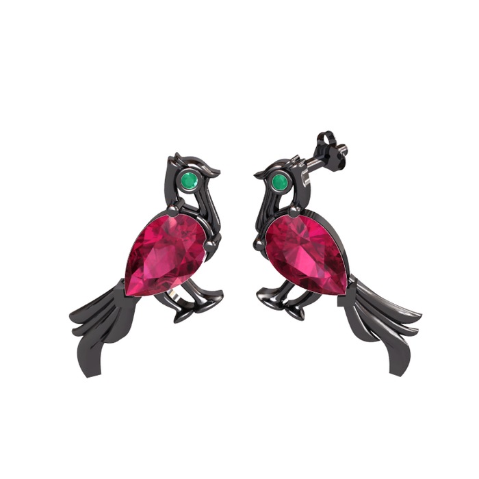 Rodolit garnet ve kök zümrüt 925 ayar siyah rodyum kaplama gümüş küpe