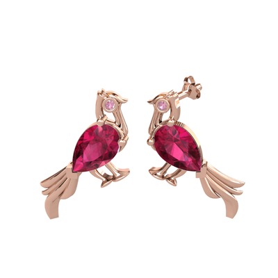 Rodolit garnet ve pembe kuvars 18 ayar rose altın küpe