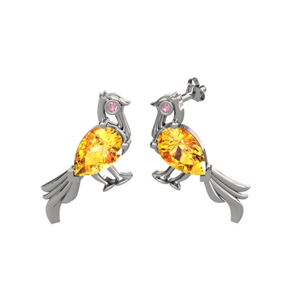 Sitrin ve pembe kuvars 925 ayar gümüş küpe