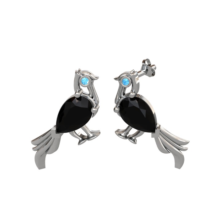 Siyah zirkon ve akuamarin 18 ayar beyaz altın küpe