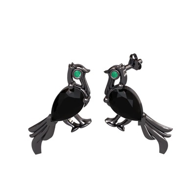 Siyah zirkon ve kök zümrüt 925 ayar siyah rodyum kaplama gümüş küpe