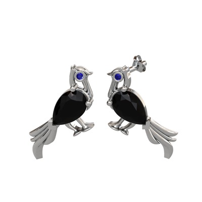 Siyah zirkon ve lab safir 14 ayar beyaz altın küpe
