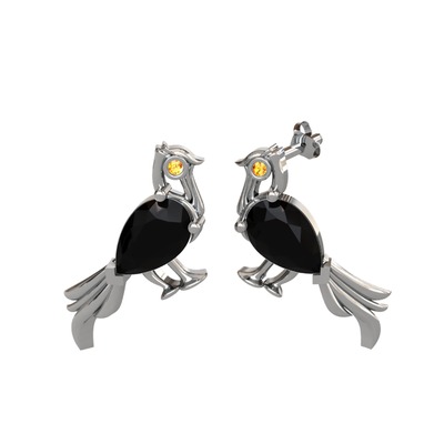 Siyah zirkon ve sitrin 14 ayar beyaz altın küpe