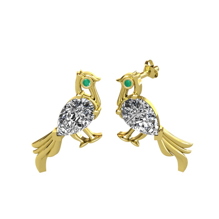 Swarovski ve kök zümrüt 8 ayar altın küpe
