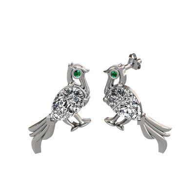 Swarovski ve yeşil kuvars 8 ayar beyaz altın küpe