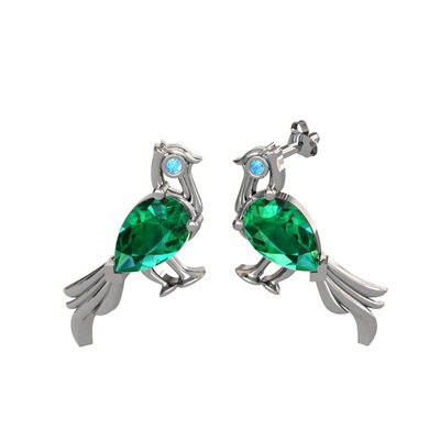 Yeşil kuvars ve akuamarin 14 ayar beyaz altın küpe