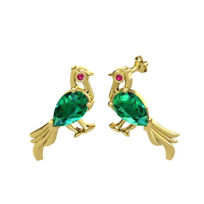 Yeşil kuvars ve rodolit garnet 14 ayar altın küpe
