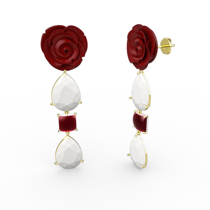 Beyaz akrilik ve kök yakut 18 ayar altın küpe (Kırmızı mineli)