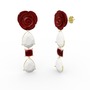 Beyaz akrilik ve kök yakut 8 ayar altın küpe (Kırmızı mineli)