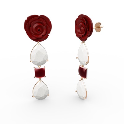 Beyaz akrilik ve kök yakut 8 ayar rose altın küpe (Kırmızı mineli)
