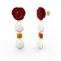 Beyaz akrilik ve sitrin 8 ayar altın küpe (Kırmızı mineli)