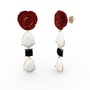 Beyaz akrilik ve siyah zirkon 18 ayar rose altın küpe (Kırmızı mineli)