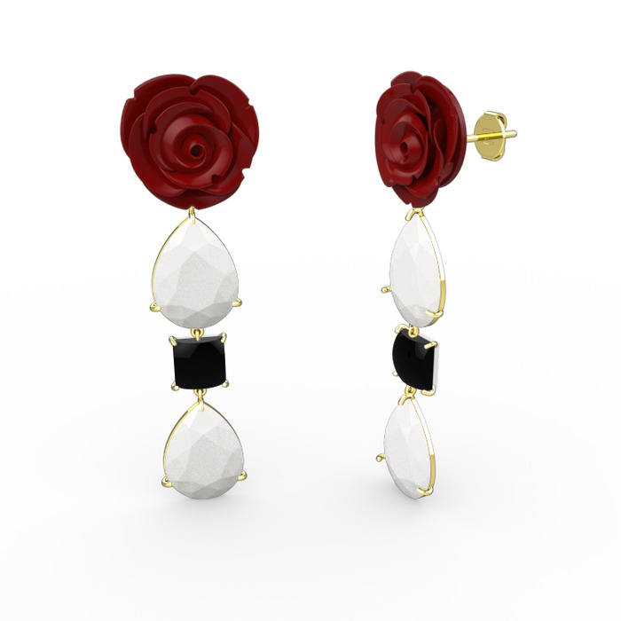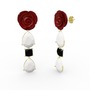 Beyaz akrilik ve siyah zirkon 8 ayar altın küpe (Kırmızı mineli)