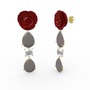 Füme akrilik ve beyaz zirkon 18 ayar altın küpe (Kırmızı mineli)