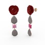 Füme akrilik ve pembe kuvars 14 ayar rose altın küpe (Kırmızı mineli)