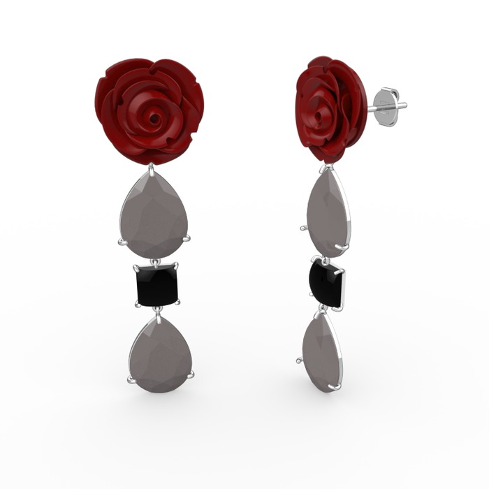 Füme akrilik ve siyah zirkon 8 ayar beyaz altın küpe (Kırmızı mineli)