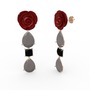 Füme akrilik ve siyah zirkon 925 ayar rose altın kaplama gümüş küpe (Kırmızı mineli)