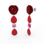 Kırmızı akrilik ve pembe kuvars 925 ayar gümüş küpe (Kırmızı mineli)