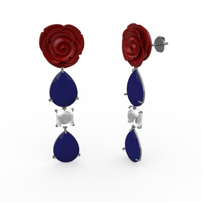Lacivert akrilik ve beyaz zirkon 925 ayar siyah rodyum kaplama gümüş küpe (Kırmızı mineli)