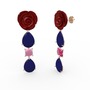 Lacivert akrilik ve pembe kuvars 18 ayar rose altın küpe (Kırmızı mineli)