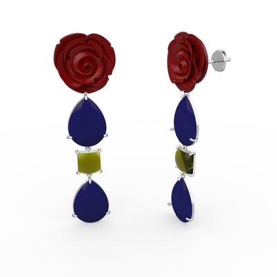 Lacivert akrilik ve peridot 8 ayar beyaz altın küpe (Kırmızı mineli)
