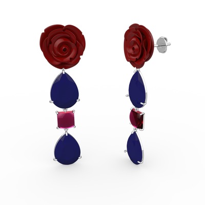 Lacivert akrilik ve rodolit garnet 925 ayar gümüş küpe (Kırmızı mineli)