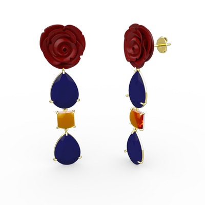 Lacivert akrilik ve sitrin 8 ayar altın küpe (Kırmızı mineli)