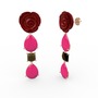 Neon pembe akrilik ve dumanlı kuvars 8 ayar rose altın küpe (Kırmızı mineli)