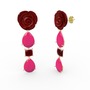 Neon pembe akrilik ve kök yakut 925 ayar altın kaplama gümüş küpe (Kırmızı mineli)