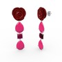 Neon pembe akrilik ve rodolit garnet 8 ayar beyaz altın küpe (Kırmızı mineli)