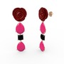 Neon pembe akrilik ve siyah zirkon 14 ayar rose altın küpe (Kırmızı mineli)